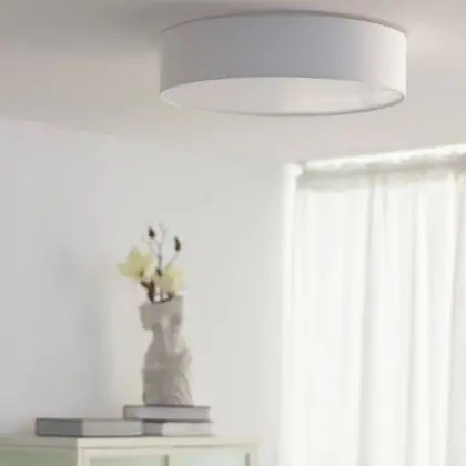 Beschrijving Bright Choice LED Plafondlamp Rond Textiel Wit | 500mm - Geschikt voor 3x E27 – Max 40W