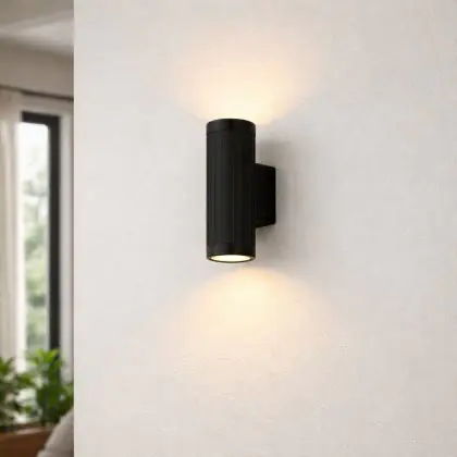 Beschrijving D'Lite Wandlamp Velor Aluminium Zwart Up & Down | IP54 - Geschikt voor 2x GU10