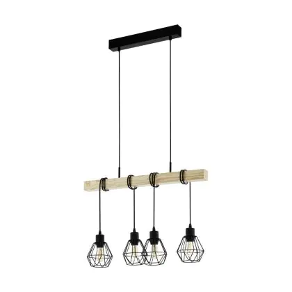 Eglo Hanglamp Townshend 5 Staal Hout Zwart | IP20 - Geschikt voor 4x E27