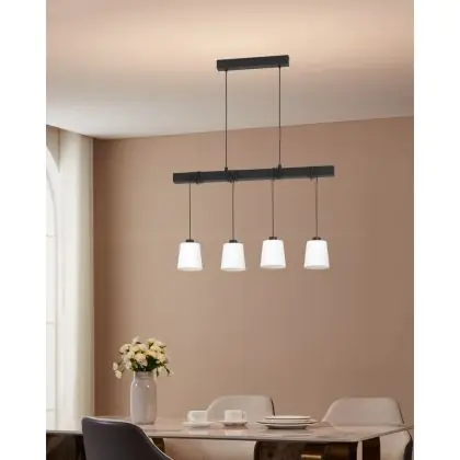 Beschrijving Eglo Hanglamp Townshend 8 Staal Hout Zwart | IP20 - Geschikt voor 4x E27