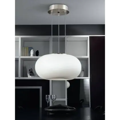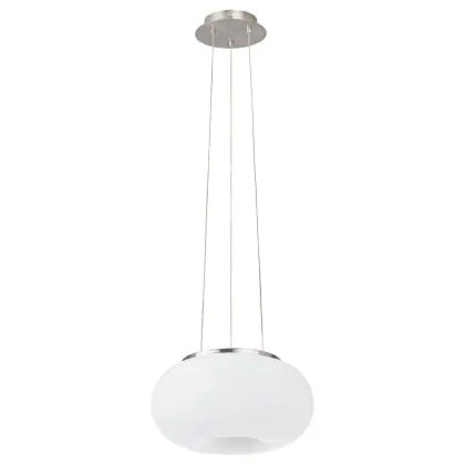 Beschrijving Eglo Pendelarmatuur Optica Staal Satijn Nikkel | Geschikt voor 2x E27