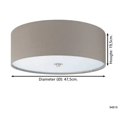 Beschrijving Eglo Plafondlamp Pasteri Staal Satijn Nikkel | IP20 - Geschikt voor 3x E27