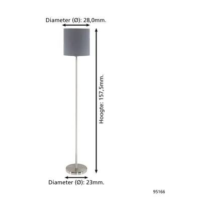 Beschrijving Eglo Vloerlamp Pasteri Staal Satijn Nikkel Grijs | IP20 - Geschikt voor 1x E27