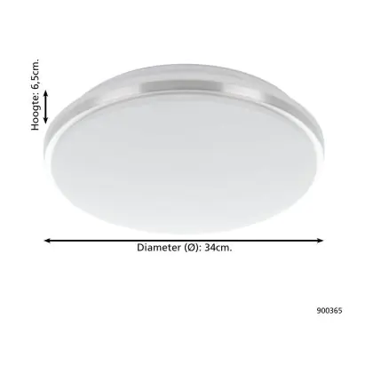 Beschrijving Eglo Wand en Plafondlamp Pinetto Staal Wit 15.6W 1900lm - 840 Koel Wit | IP44