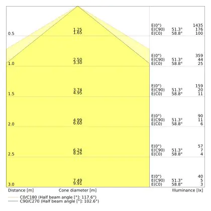 ![]() De kleurcode is een combinatie van de kleurweergave (CRI) en lichtkleur (Kelvin). Het eerste getal is de kleurweergave (1 = zeer slechte kleurweergave, 9 = maximale kleurechtheid). Het tweede en derde cijfer betreft de lichtkleur. Een lamp met kleurcode 830 heeft bijvoorbeeld een goede kleurweergave en straalt een warm wit licht uit (3000K), waar een lamp met de kleurcode 940 een uitstekende CRI heeft en een koel wit licht (4000K) uitstraalt. |