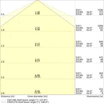 ![]() De kleurcode is een combinatie van de kleurweergave (CRI) en lichtkleur (Kelvin). Het eerste getal is de kleurweergave (1 = zeer slechte kleurweergave, 9 = maximale kleurechtheid). Het tweede en derde cijfer betreft de lichtkleur. Een lamp met kleurcode 830 heeft bijvoorbeeld een goede kleurweergave en straalt een warm wit licht uit (3000K), waar een lamp met de kleurcode 940 een uitstekende CRI heeft en een koel wit licht (4000K) uitstraalt. |