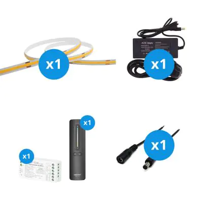 Het grote voordeel van deze complete set is dat je alle accessoires hebt die je nodig hebt om de beste lichtaccenten voor je huis of bedrijfspand te creëren. Je hoeft niet op zoek te gaan naar de juiste apparatuur; je hoeft alleen maar alle elementen met elkaar te verbinden. Daarna steek je de stekker in het stopcontact in je huis. Je kunt hier alles over lezen in onze installatieblog. Deze set bevat een: