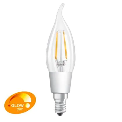 Beschrijving Osram Classic LED E14 gebogen punt Kaars Filament Helder 4.5W 470lm - 827 Zeer Warm Wit | Dimbaar - Vervangt 40W