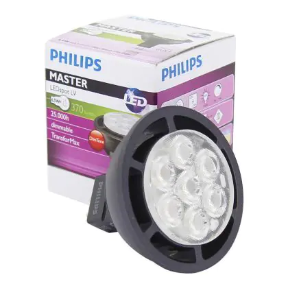 De Philips LED spot is de vervanger voor halogeenspots van 35 watt. Deze LED spot gebruikt maar 6.5 watt. Dat is een energiebesparing van wel 82% ten opzichte van halogeen spots.