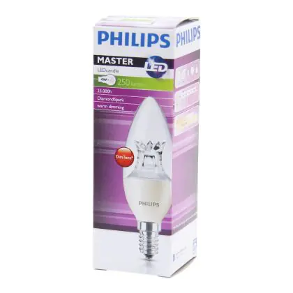 De Philips LED candle is de vervanger voor halogeen en/of gloeilampen van 25 watt. Deze LED spot gebruikt maar 4 watt. Dat is een energiebesparing van wel 82% ten opzichte van halogeen en gloeilampen.