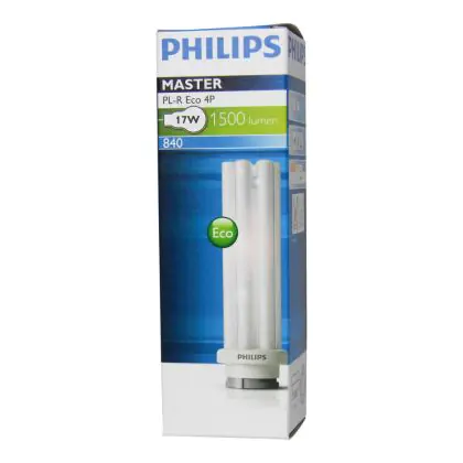 De Philips PL-R Eco 4P zijn bijzonder geschikt voor ruimtes waar verlichting dag en nacht brand. U herkent de PL lamp eenvoudig aan de GR14q-1 lampvoet met 4 pinnen. De lichtbron is 15cm lang. Op het moment dat de afmeting van uw huidige lamp sterk afwijkt van 15cm heeft u een ander wattage in gebruik. Daarbij heeft de lichtbron energielabel A. De levensduur is 24000 branduren. Als de lamp begint te knipperen en moeizaam opstart, is deze aan vervanging toe.